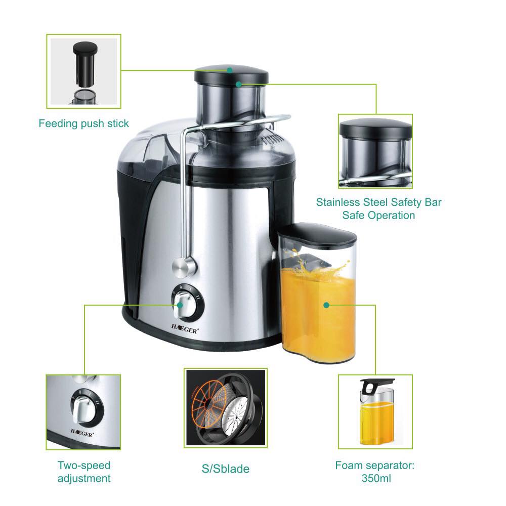 Shpejtësia maksimale e shtrydhëse frutash e perimesh: 12000 RPM dhe më poshtë Materiali i trupit: çelik inox + ABS
